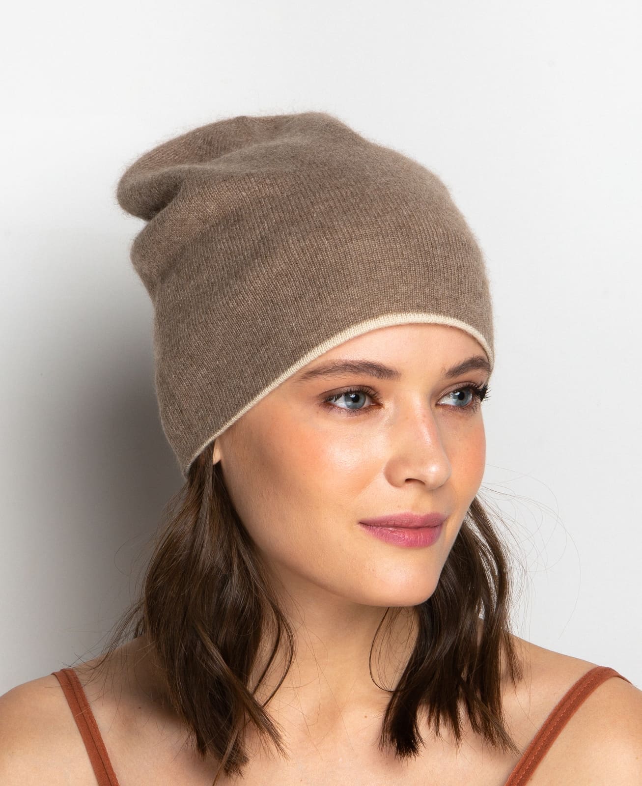 Шапка кашемировая двухсторонняя 11041 капучино/бежевый