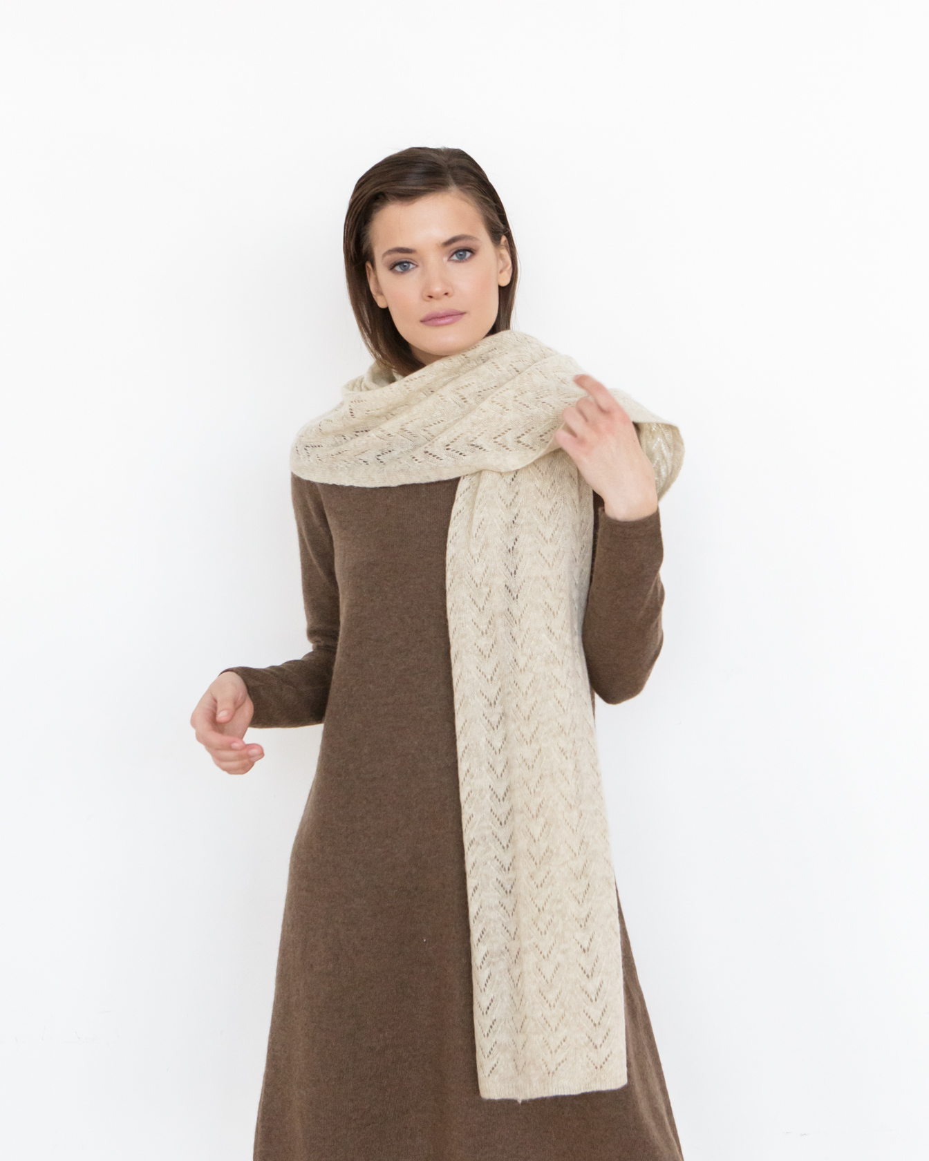 Палантин из шерсти яка 3803 серо-бежевый