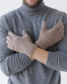 Теплые перчатки из монгольской шерсти коричневые