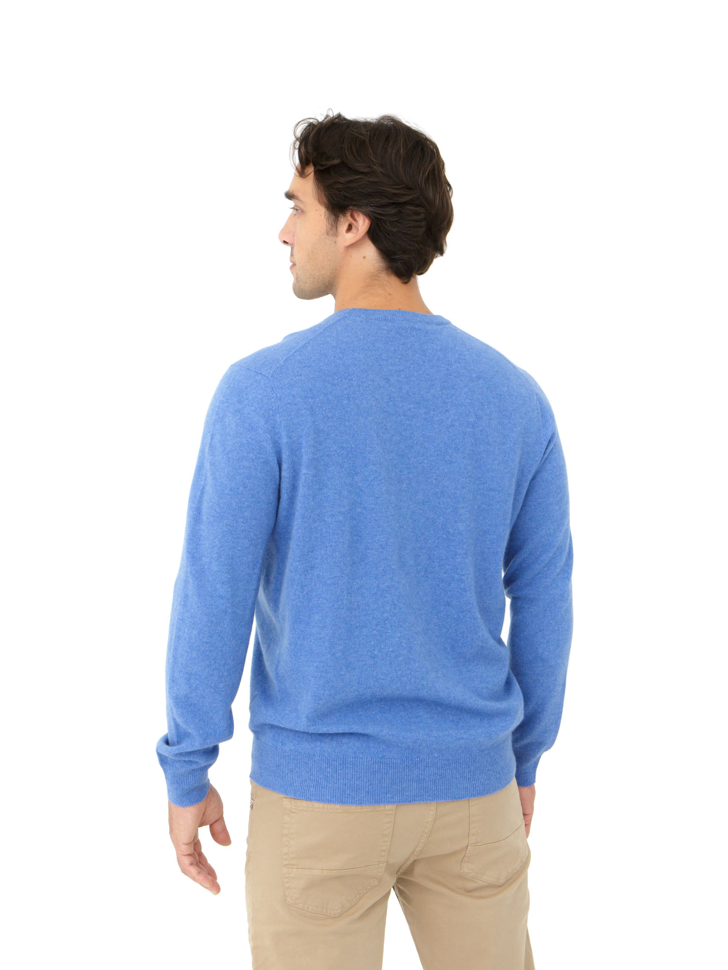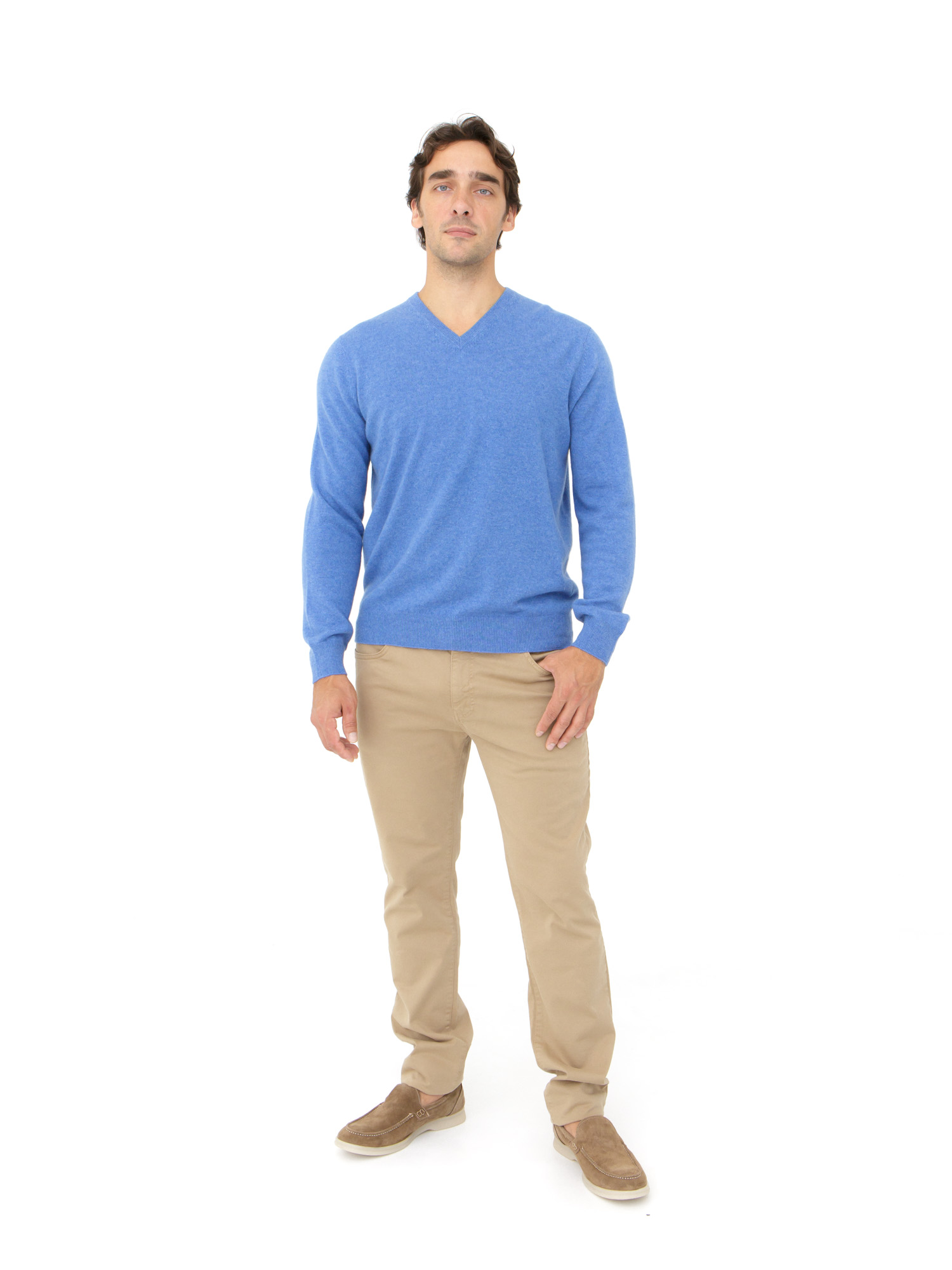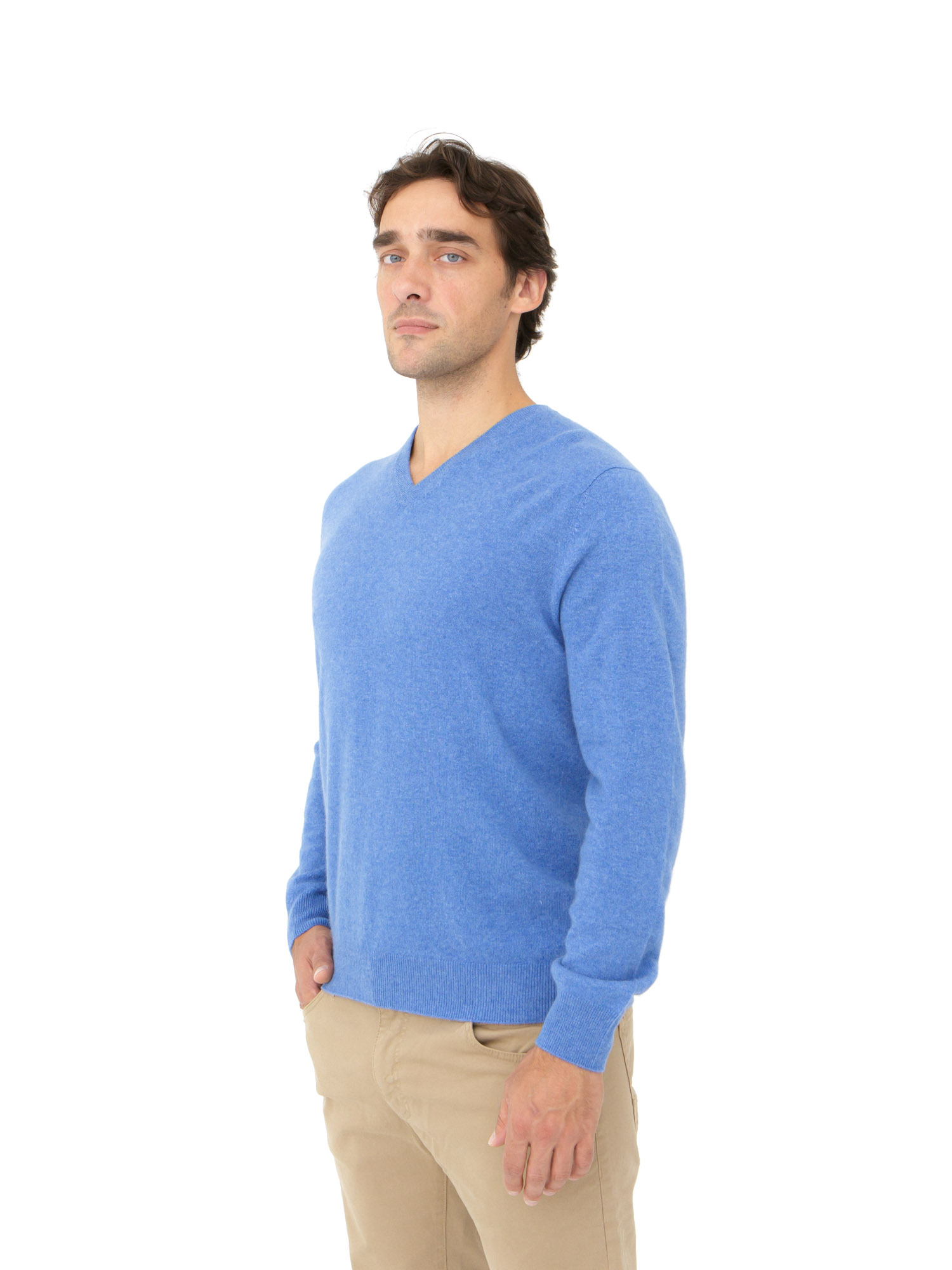 Мужской джемпер из кашемира синего цвета — это идеальное сочетание изысканного стиля и комфорта. Выполненный из 100% кашемира, этот джемпер отличается исключительной мягкостью и легкостью, обеспечивая тепло и уют в любую погоду. V-образный вырез придаёт модели элегантный и современный вид, позволяя легко комбинировать его с рубашками и брюками для создания как делового, так и повседневного образа. Синий цвет джемпера освежает и добавляет яркости в любой гардероб, подчеркивая уверенность и хороший вкус владельца. Этот джемпер — отличный выбор для стильных и требовательных мужчин.