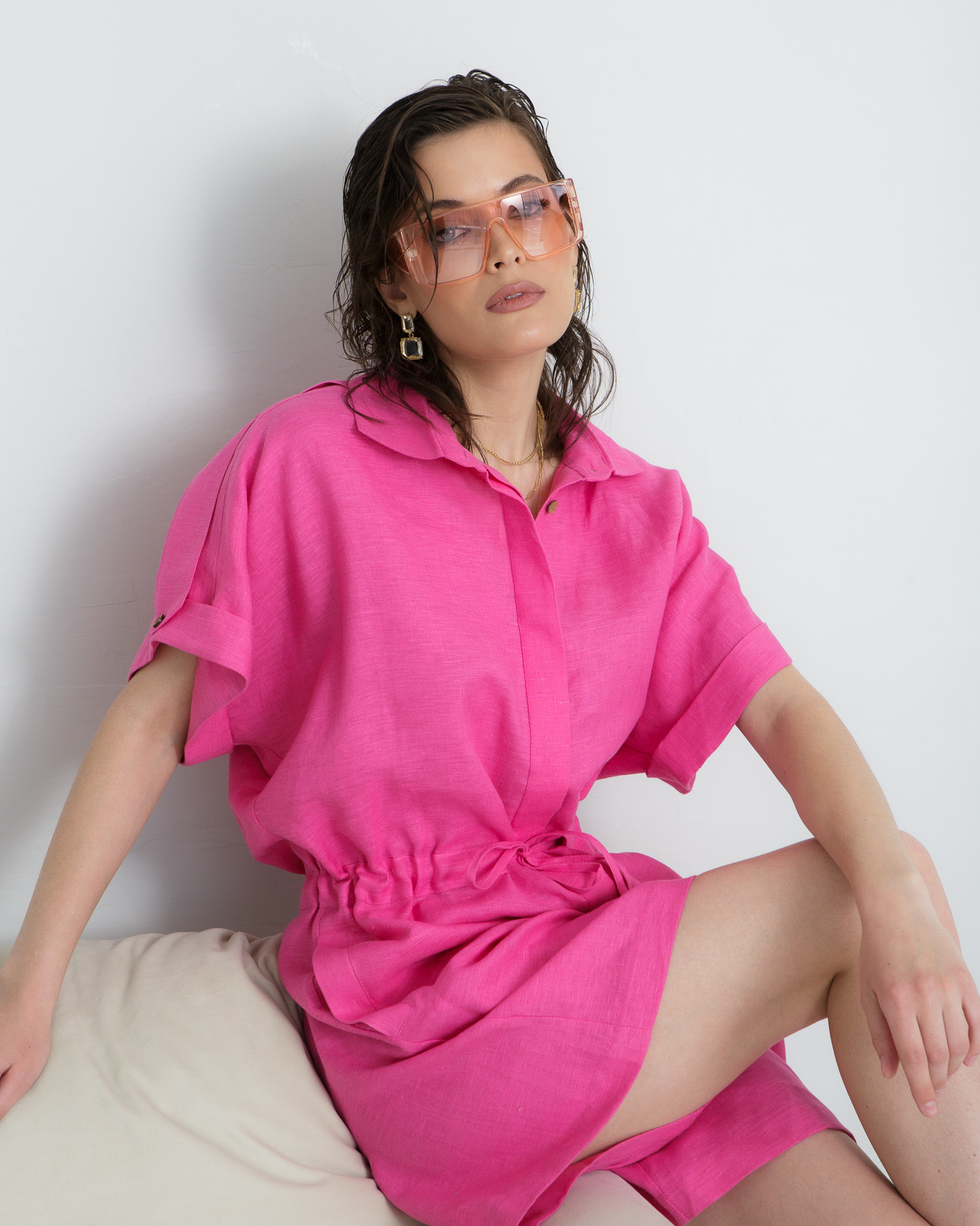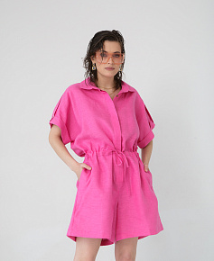 Яркий комбинезон цвета фуксия из 100% льна станет стильным акцентом в вашем летнем гардеробе. Изготовлен из натурального льна, он дарит приятную прохладу в теплые дни и обеспечивает отличную воздухопроницаемость. Свободный фасон с короткими рукавами и шортами позволяет чувствовать себя комфортно и легко, а эластичный пояс с завязками подчеркивает талию, создавая женственный силуэт. Наличие карманов добавляет практичности и удобства в повседневной носке. Этот комбинезон идеально подойдет как для прогулок по городу, так и для отдыха на природе или на пляже.