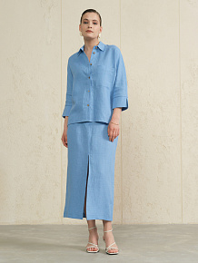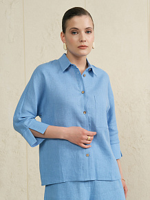 Рубашка льняная 757 морская волна