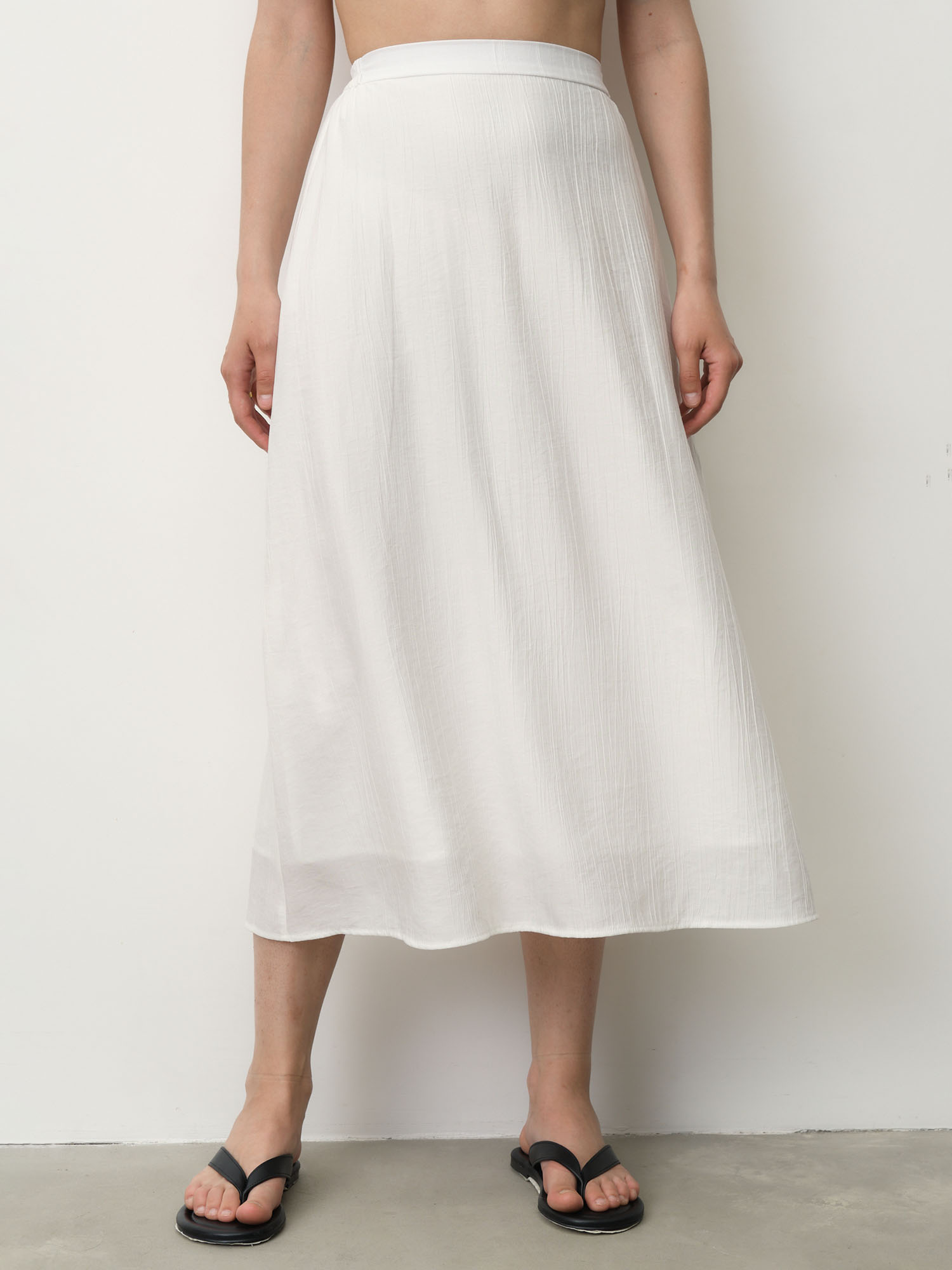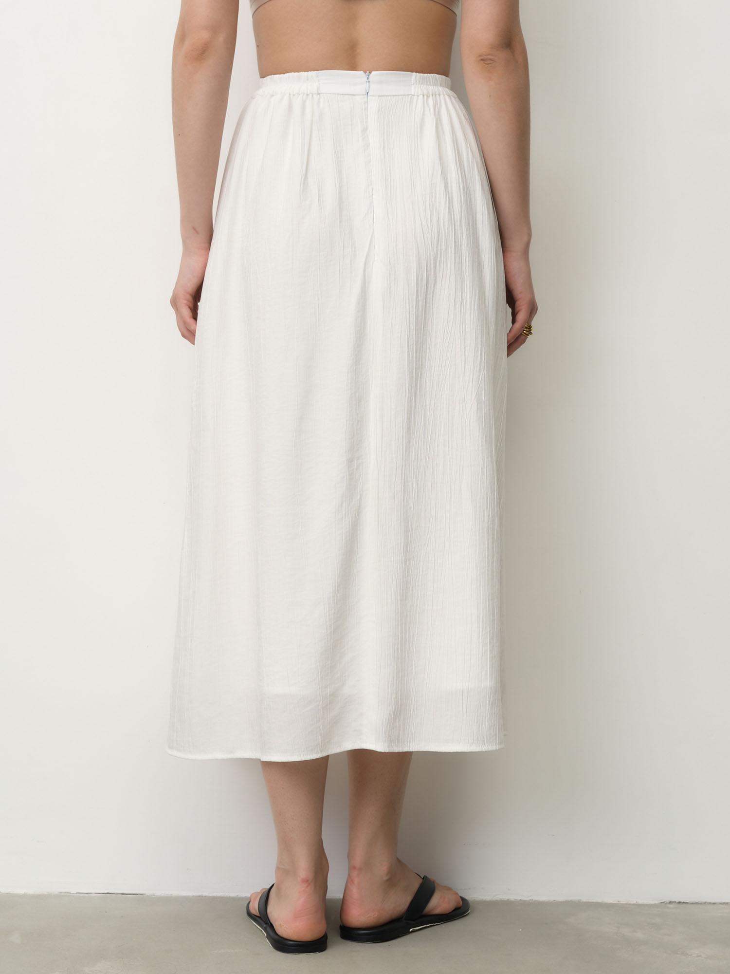 Эластичный пояс для комфортной посадки, легкая струящаяся ткань, аккуратные швы, фактурная поверхность.