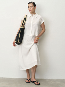 Расклешенный силуэт длины миди с плавными линиями и мягкой драпировкой. Лаконичный крой подчеркивает универсальность модели.
