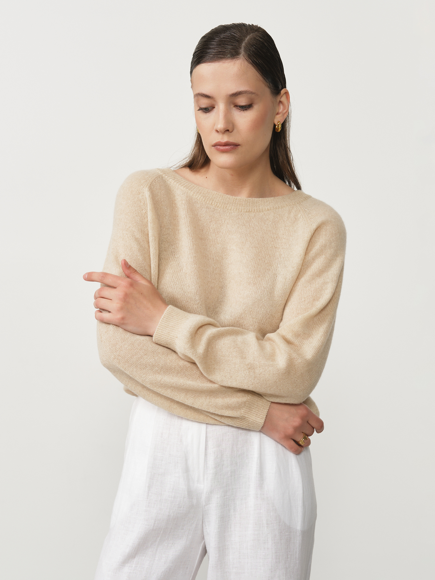 Бежевый — тёплый и универсальный оттенок, который подчёркивает натуральность кашемира и легко комбинируется с различными цветами одежды.