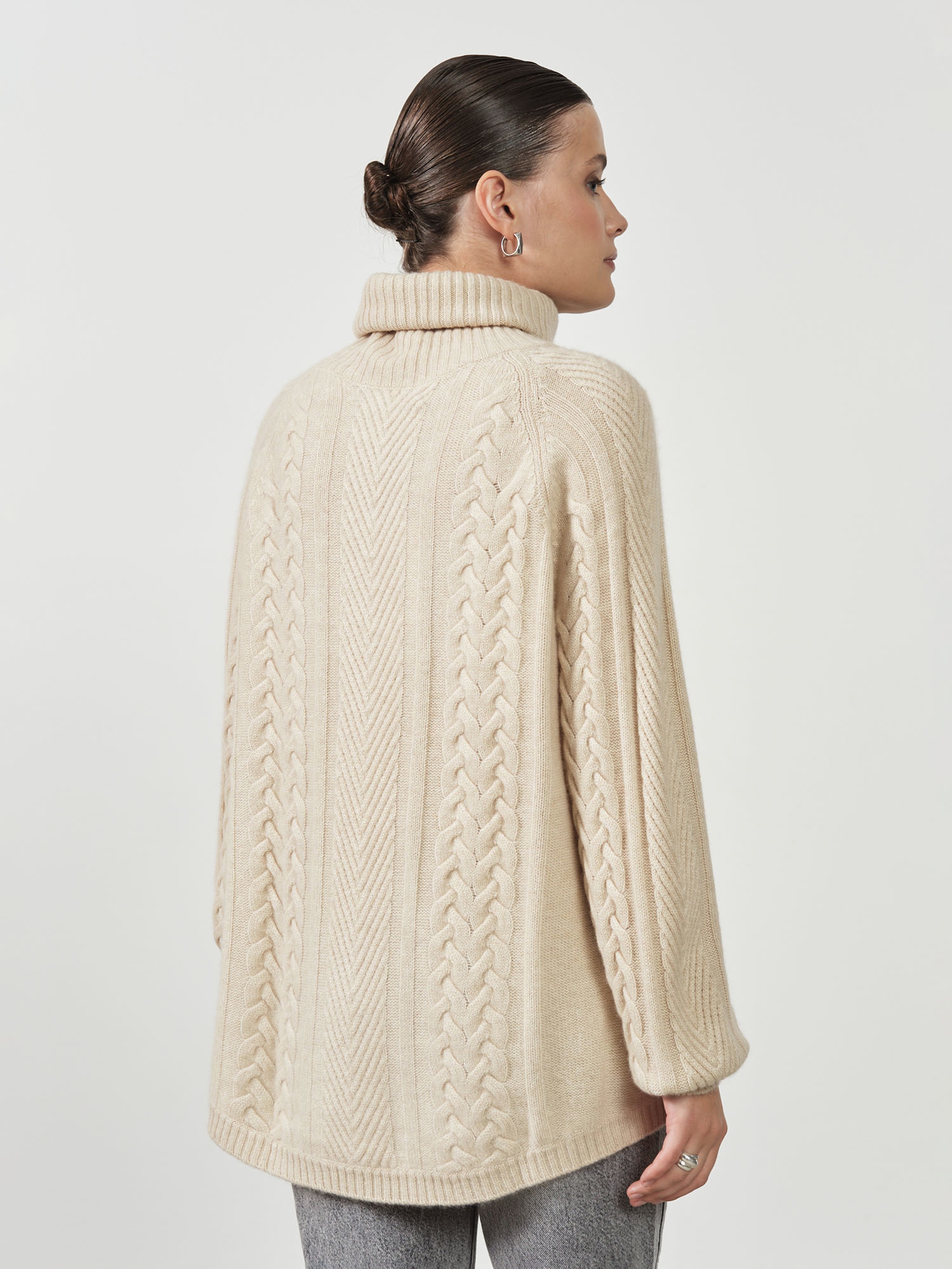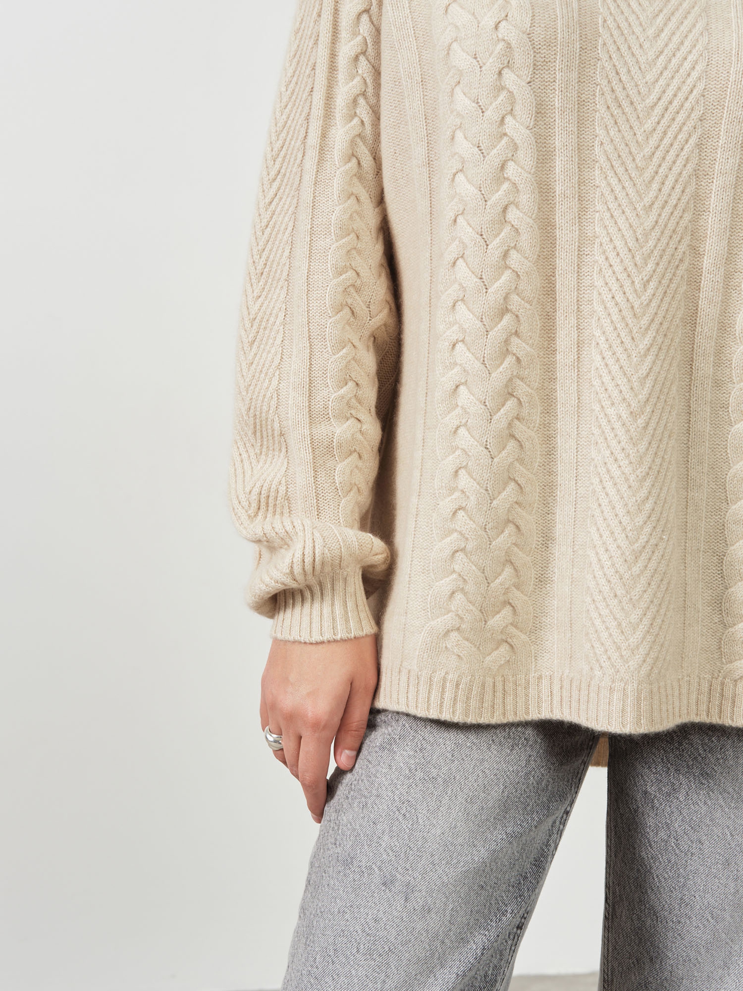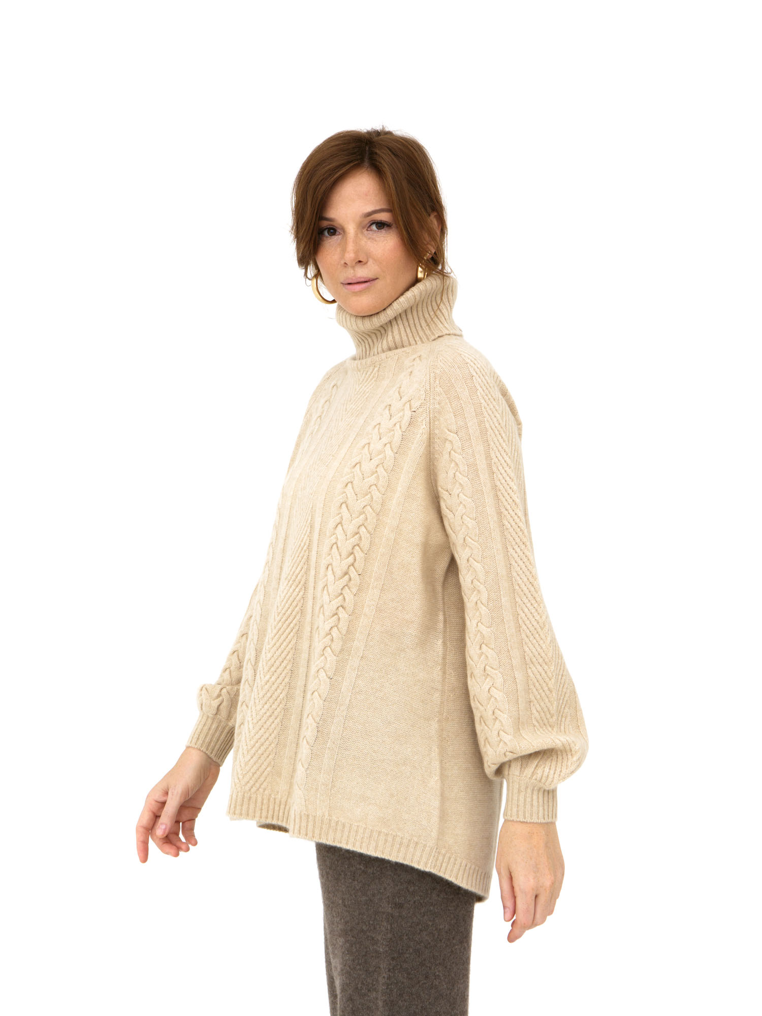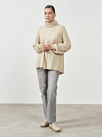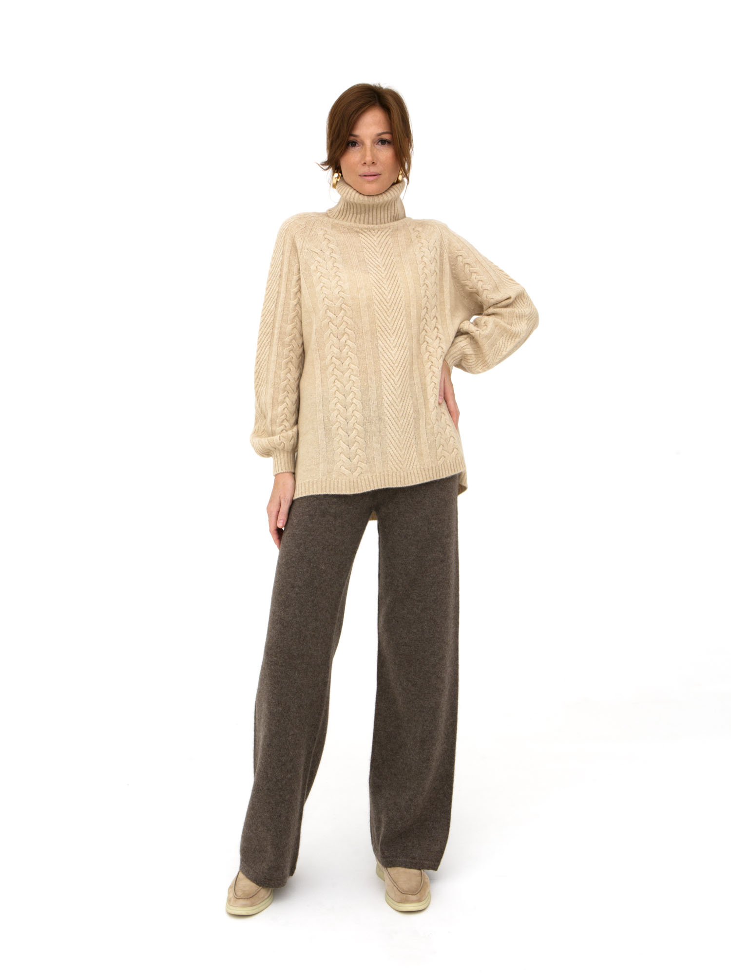 Женский свитер из кашемира 5056 — уютная и элегантная модель с выразительной фактурной вязкой. Свободный силуэт и высокий воротник создают современный и комфортный образ. Свитер легко становится центральным элементом гардероба и гармонично сочетается с брюками, юбками и джинсами.
